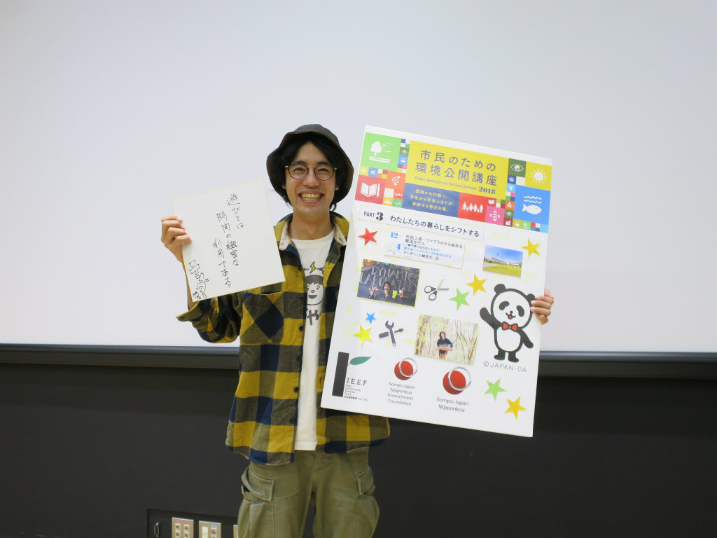 今年度最終回となる今回は、 「市民工房=ファブラボから始める解決モデル~専門家にならないススメ~」と題し 鹿児島でエネルギー自給自足の生活をしている ヒッピーのテンダーさん(小崎悠太さん)にご講演いただきました。