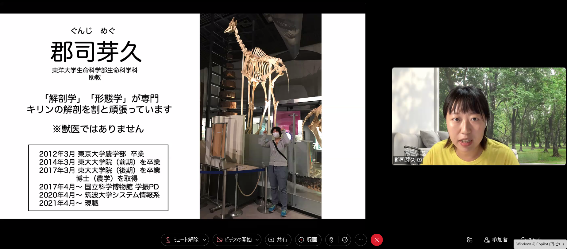 「キリンから考える生き物の不思議と地球の未来」のタイトルで、