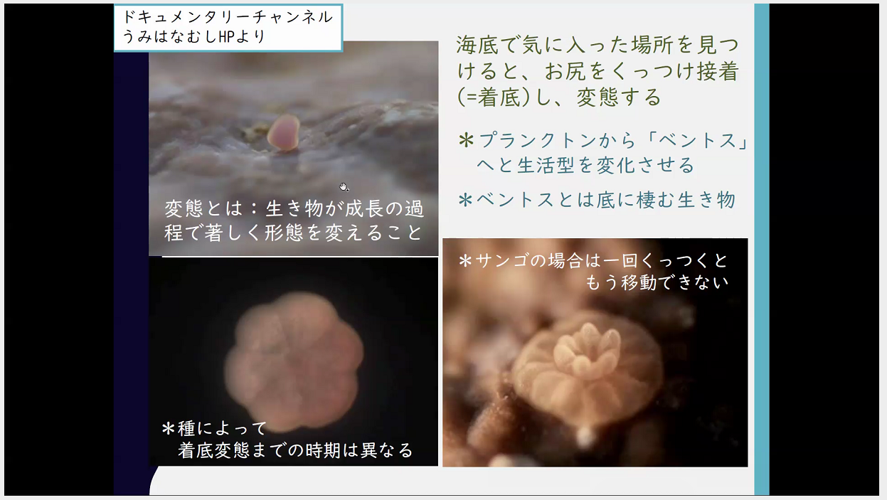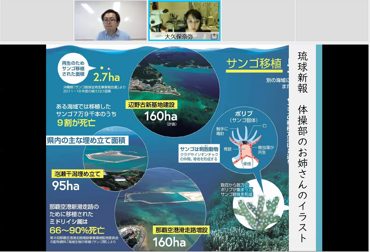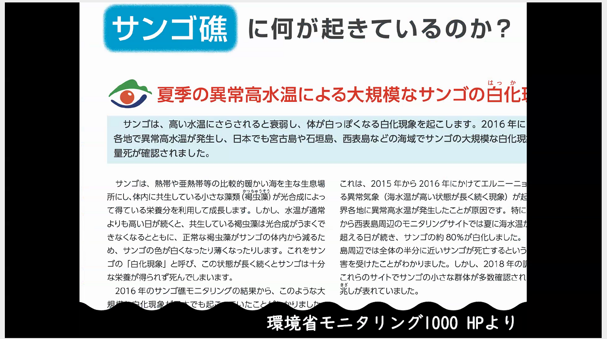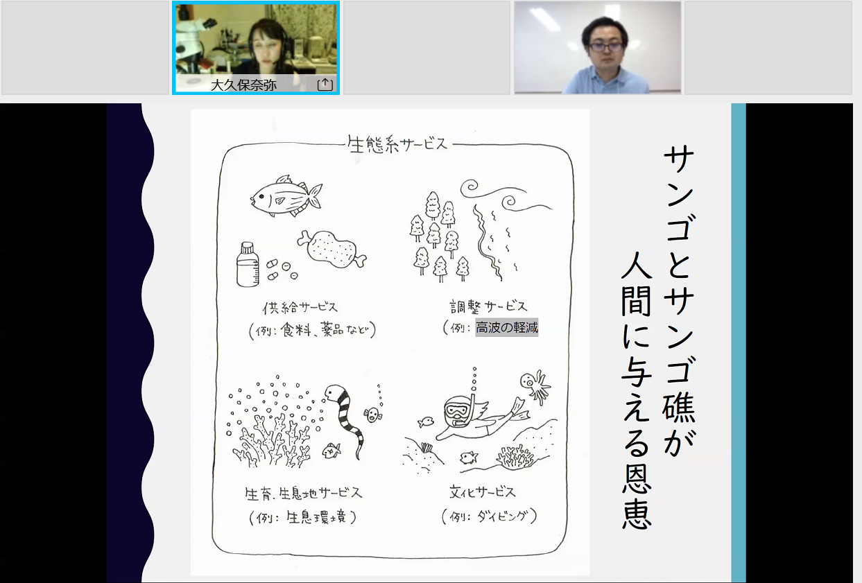 こんにちは。SOMPO環境財団の瀬川です。 今回は9月29日(水)に開催された、「市民のための環境公開講座」第3回のレポートを お届けします。 第3回は東京経済大学全学共通教育センター准教授の大久保奈弥さんを講師に迎え、 「サンゴとサンゴ礁生態系の現状」をテーマに講演いただきました。 大久保さんは大学院生時代から長年サンゴの研究を行い、2017年には2つの新しい亜目 (目と科の間に置かれる区分)を提唱されたことで、サンゴの分類学に大きな貢献をされた方です。 講演の合間には自宅で育てているサンゴとのツーショットも見せていただき、全編を通じて サンゴへの愛があふれる講座でした。 講座は、「サンゴとサンゴ礁の違いは?(⇒サンゴ礁はサンゴの死がいが積み重なってできた 地形のこと)」、「サンゴはどんな動物?(⇒イソギンチャクと同じ刺胞動物)」という 問いかけから始まりました。 今回はアンケート機能を活用することで双方向のやり取りが生まれ、受講者の皆さんも講座に 入り込みやすかったのではないでしょうか。 続いて普段はあまり見る機会のない、サンゴの発生の様子、着底から群体として成長する過程、 褐虫藻との共生など、神秘的な画像を交えながらサンゴの生態をご紹介いただきました。 この説明の後、大久保さんの問いは私たち人間とサンゴの関わり方に展開していきます。 「なぜサンゴ(サンゴ礁)を守る必要があるのでしょうか?」 サンゴは、私たちに様々な恩恵をもたらしてくれます。生態系を保全することはもちろん、 高波を防ぐ調整効果や観光資源としての文化的な貢献も非常に大きいものです。 (八重山諸島にサンゴがもたらす経済効果は230億円!という試算も。) 海洋国である日本は世界でも特にこの恩恵を大きく受けている国ですが、そのサンゴは 2050年までにはなくなってしまう、という予想もされており、非常に危機的な状況に あります。では、どうすればサンゴを守ることができるのでしょうか。 ここから講演は核心に迫っていきます。日本では「サンゴを復活させるため」に、これまで 多くの時間と資金を「移植」という試みに費やしてきました。自治体や国の事業として行われる 大規模なものから、ふるさと納税やクラウドファンディングを活用したもの、手法も有性・無性 の移植法や再生医療を活用したものなど、多種多様です。 しかし、残念ながらこれらの取り組みはいずれも大きな成果を収めるには至っていません。 「移植したサンゴの9割が死亡」、「19年間、20億円をかけてほぼ成果なし」といった、 ショッキングなデータも紹介されました。 そして、この非常に困難な再生活動をしている横で、埋め立てや空港建設工事により移植した 面積の100倍以上のサンゴが失われています。この再生と破壊のペースを比較すれば、 「移植ではサンゴを復活させることはできない」という結論を逃れることができません。 行政や企業は「サンゴを移植して復活させる!」というプラスの面だけを過剰に喧伝し、 むしろ「再生できるから破壊しても大丈夫」という楽観的な言説を助長しているという指摘は、 私たちにとって非常に重いものでした。 では、私たちがサンゴを守るために何ができるのか?という問いに対して、大久保さんの答えは 明快です。それは「今あるサンゴを守ること」。 サンゴが住める環境をしっかりと守ることができれば、サンゴはちゃんと増えていきます。 講座の最後には、この環境を守るための基準を条例などでしっかりと定め、生物多様性に応じた 開発の優先度をつけることで、サンゴを守ることができる、という力強いメッセージを いただきました。 耳障りのよい情報に流されず、不都合な事実から目を背けない大久保さんのスタンスは、 サンゴの問題に限らず、環境問題に取り組もうとする皆さんの模範になる姿勢と感じました。 参加した皆さんにとっても、多くの刺激を受ける講座となったのではないでしょうか。 今回の講座で、「市民のための環境公開講座」PART1:気候変動とエネルギーの転換は 終了となります。 次回からのテーマは、PART2:企業が取り組むサステナビリティです。 第1弾は10月13日(水)18時から、 「すべての人のKirei Lifestyleへの貢献をめざして」をテーマに、花王株式会社ESG活動推進部 マネジャーの井上紀子さんに講演いただきます。ぜひご視聴ください! <市民のための環境公開講座・お申込み> https://www.sompo-ef.org/kouza/kouza2021/