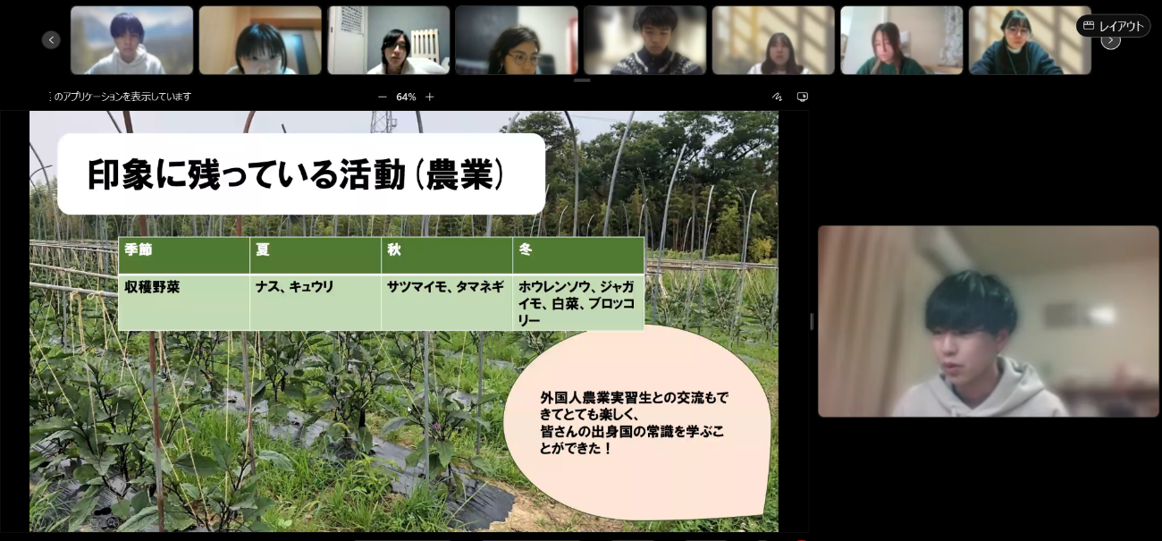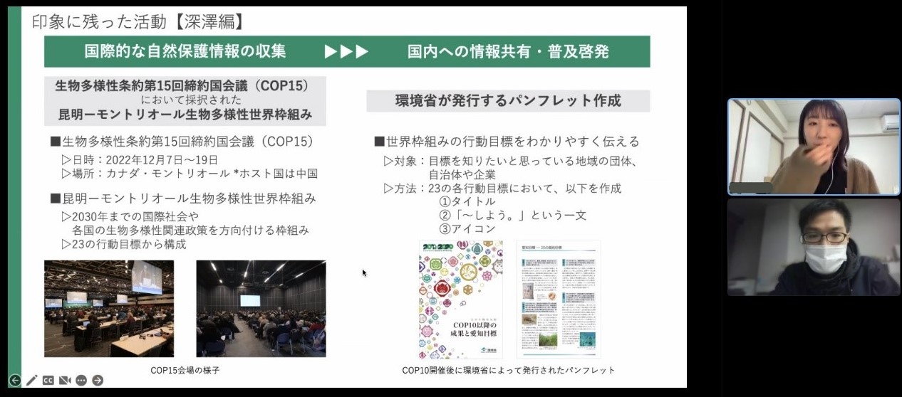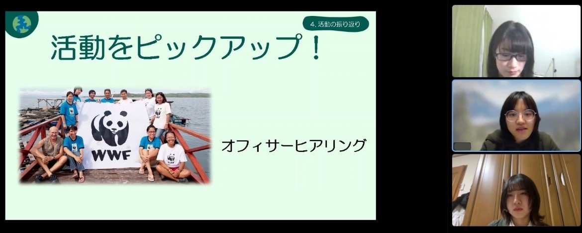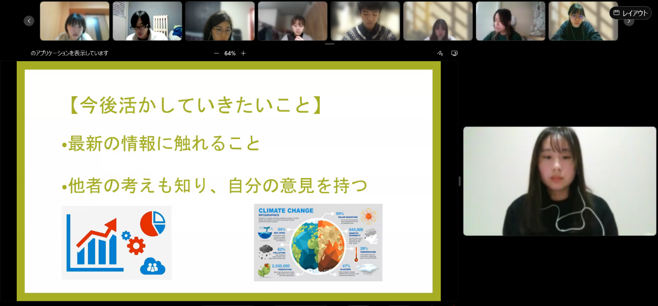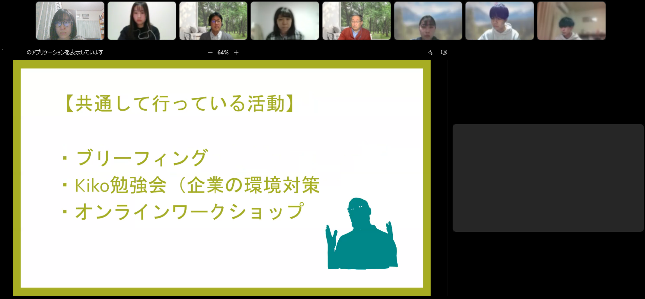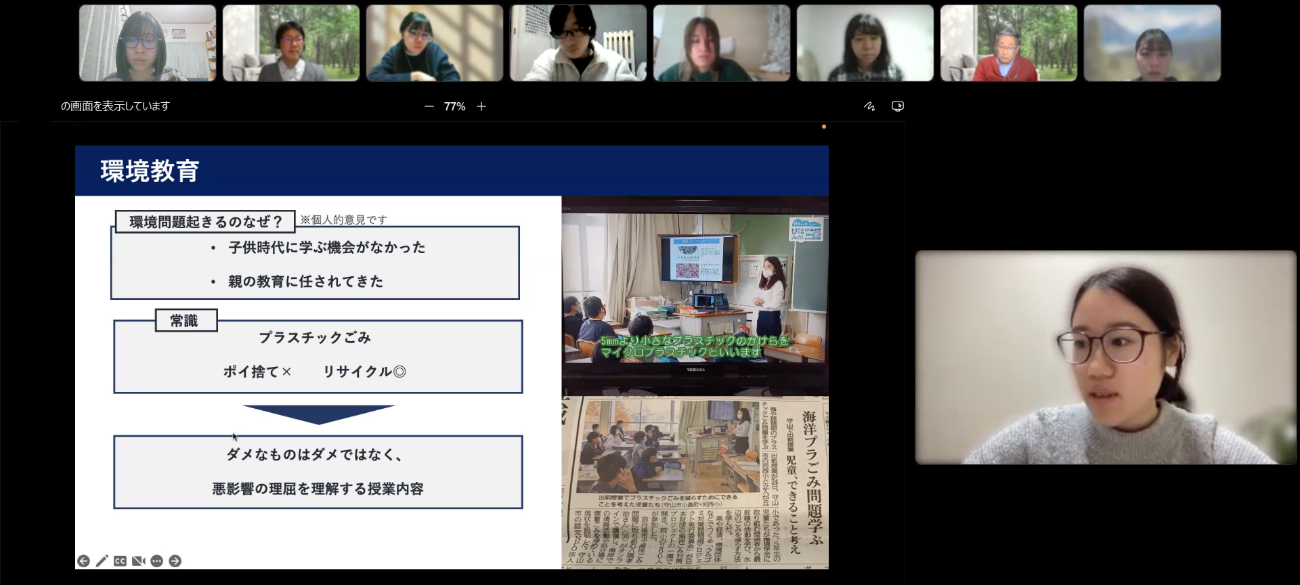 提出された環境日記の中から選ばれた作品の制作者に対して、オンライン授賞式を開催。