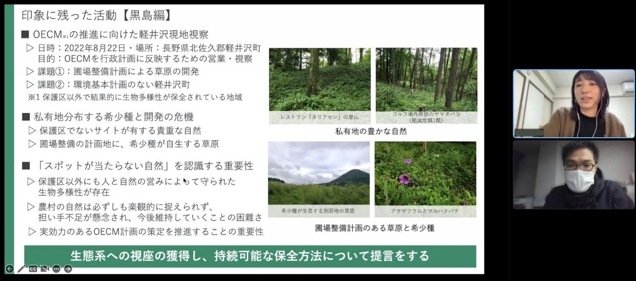 嶋田さんは、自然体験と様々な方との出会いが印象に残ったそうです。