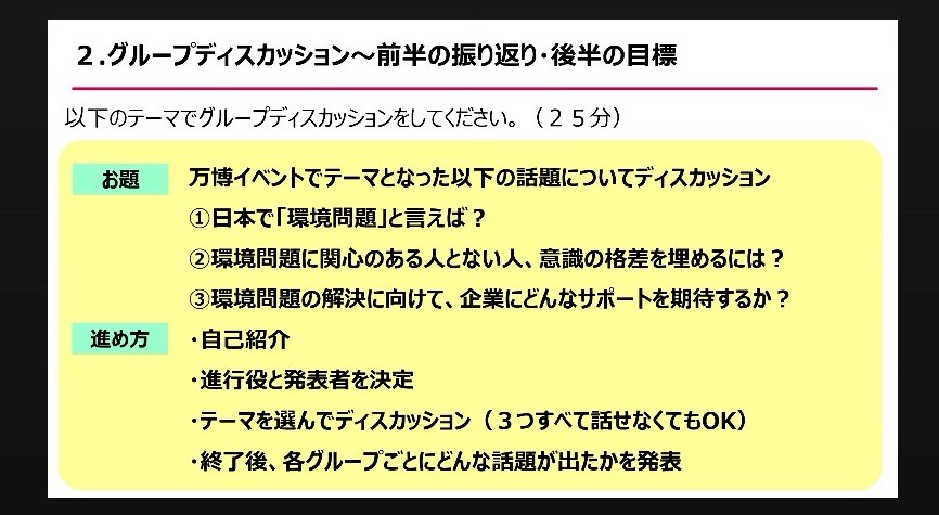 また、海洋プラスチック問題や食品ロスなど、具体的な問題を提示されて話し合う場合は