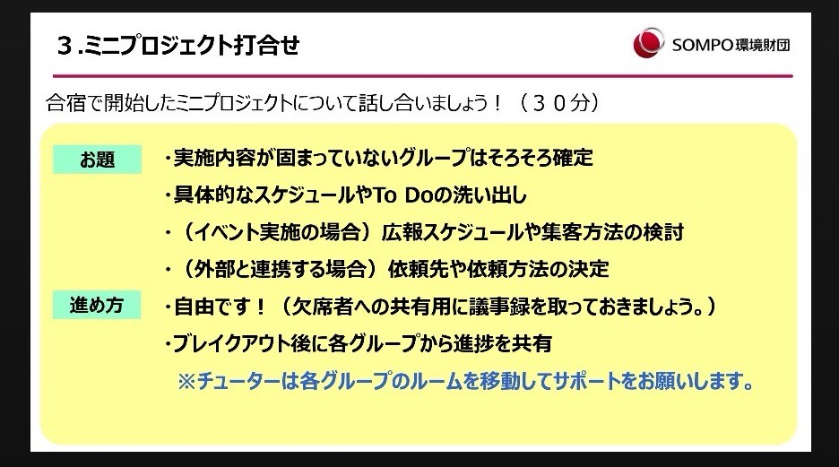 ②各チームごとにミニプロジェクトの話し合い