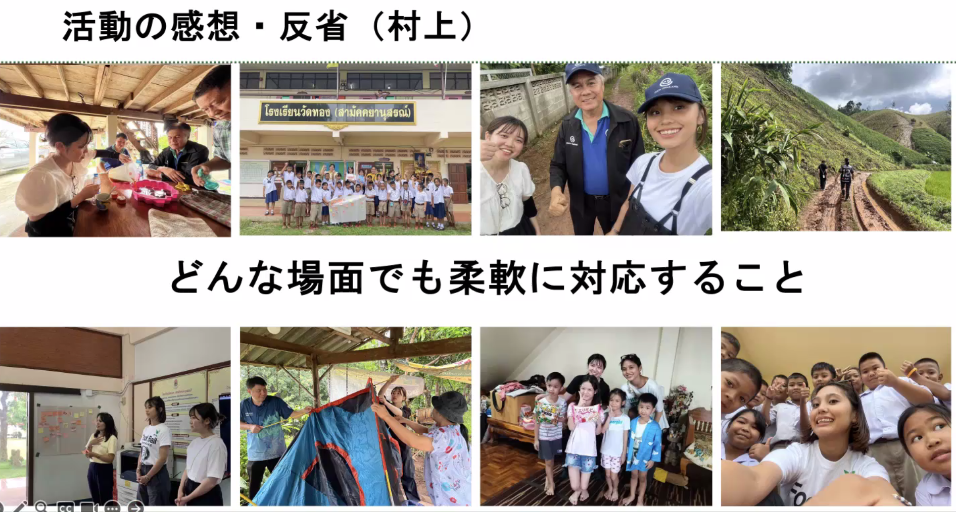 活動紹介では4つの派遣先が紹介され、それぞれがとても興味深く、皆さんが頑張って