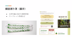 藤井さんは樹恩割り箸の広報に最も力を入れ、樹恩割りばしを使用している60以上の