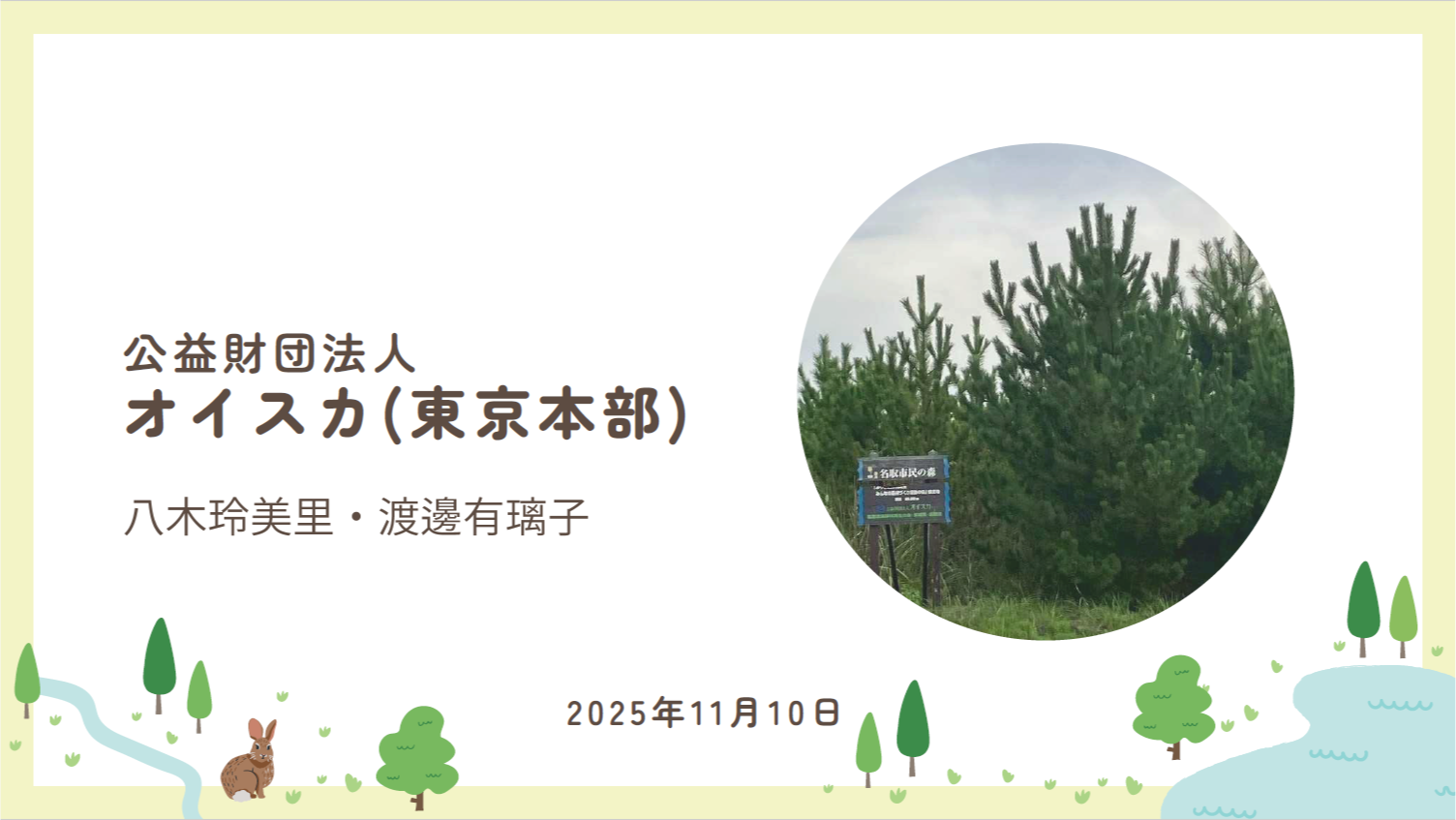 こんにちは。SOMPO環境財団の瀬川です。