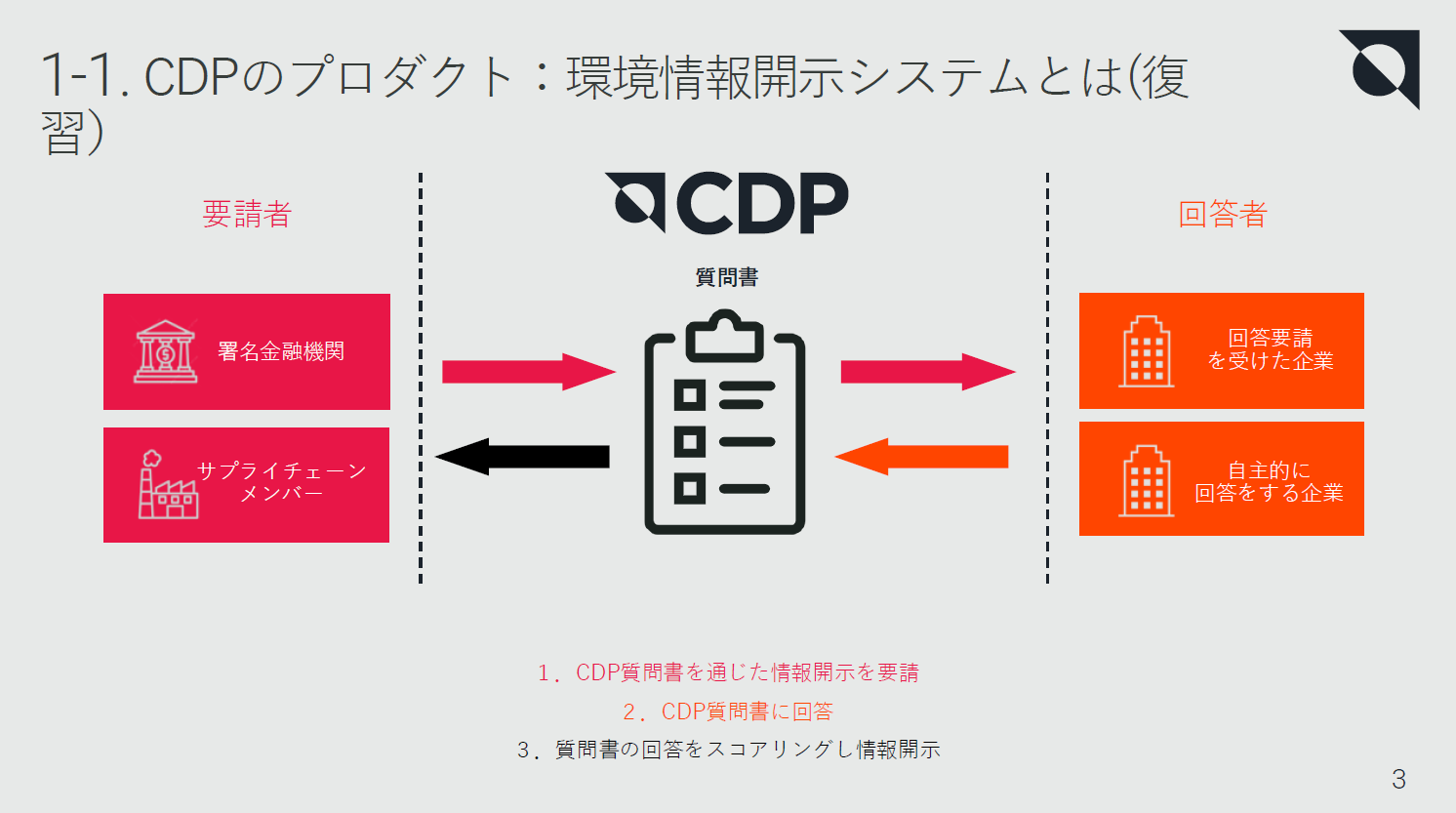 CDPもISEPと同様、直接保全活動をするのではなく、企業の与える環境への影響や取り組みの