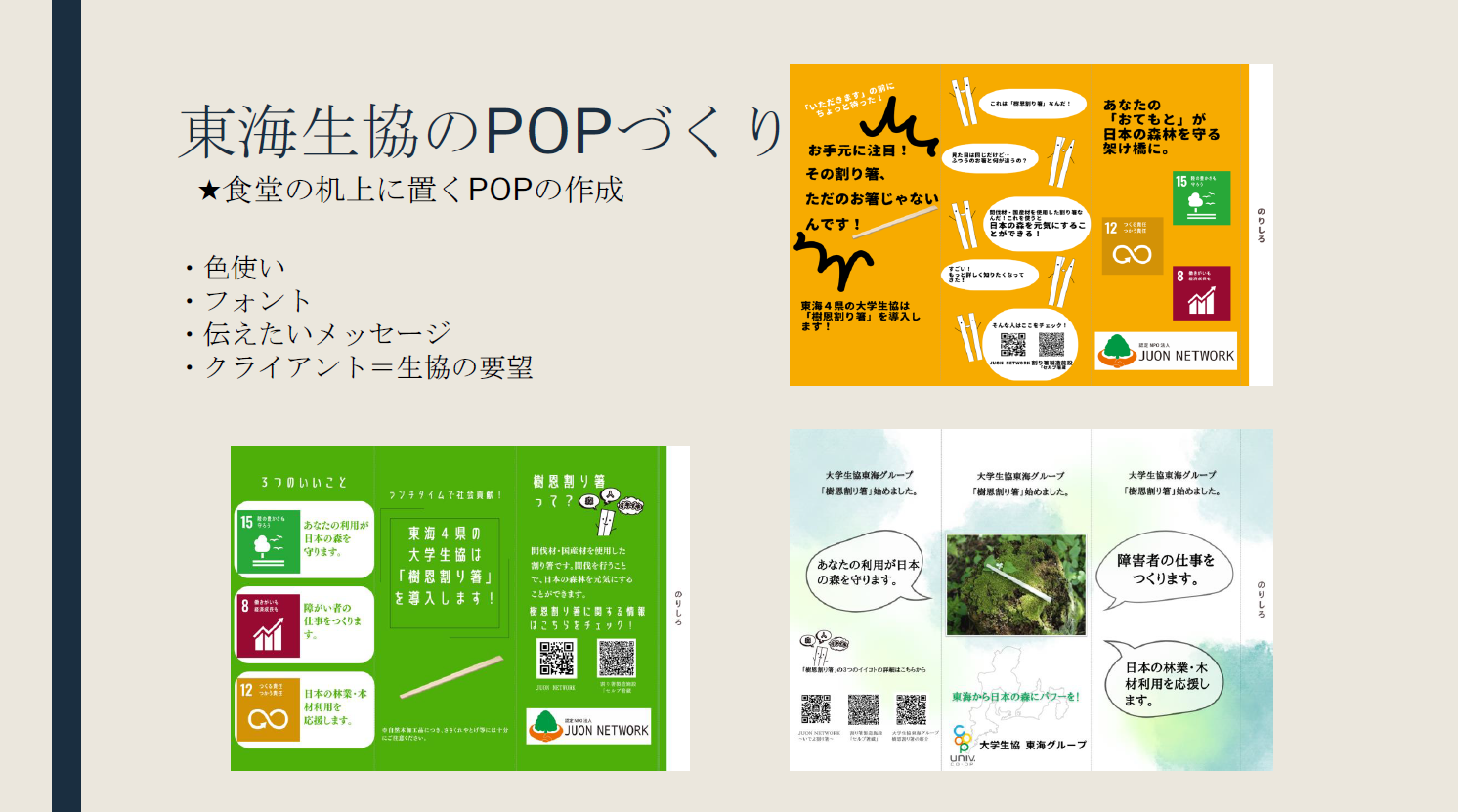 加藤さんは、生協に置くPOP作りで試行錯誤していく中で、見る人に伝わりやすいフォントを