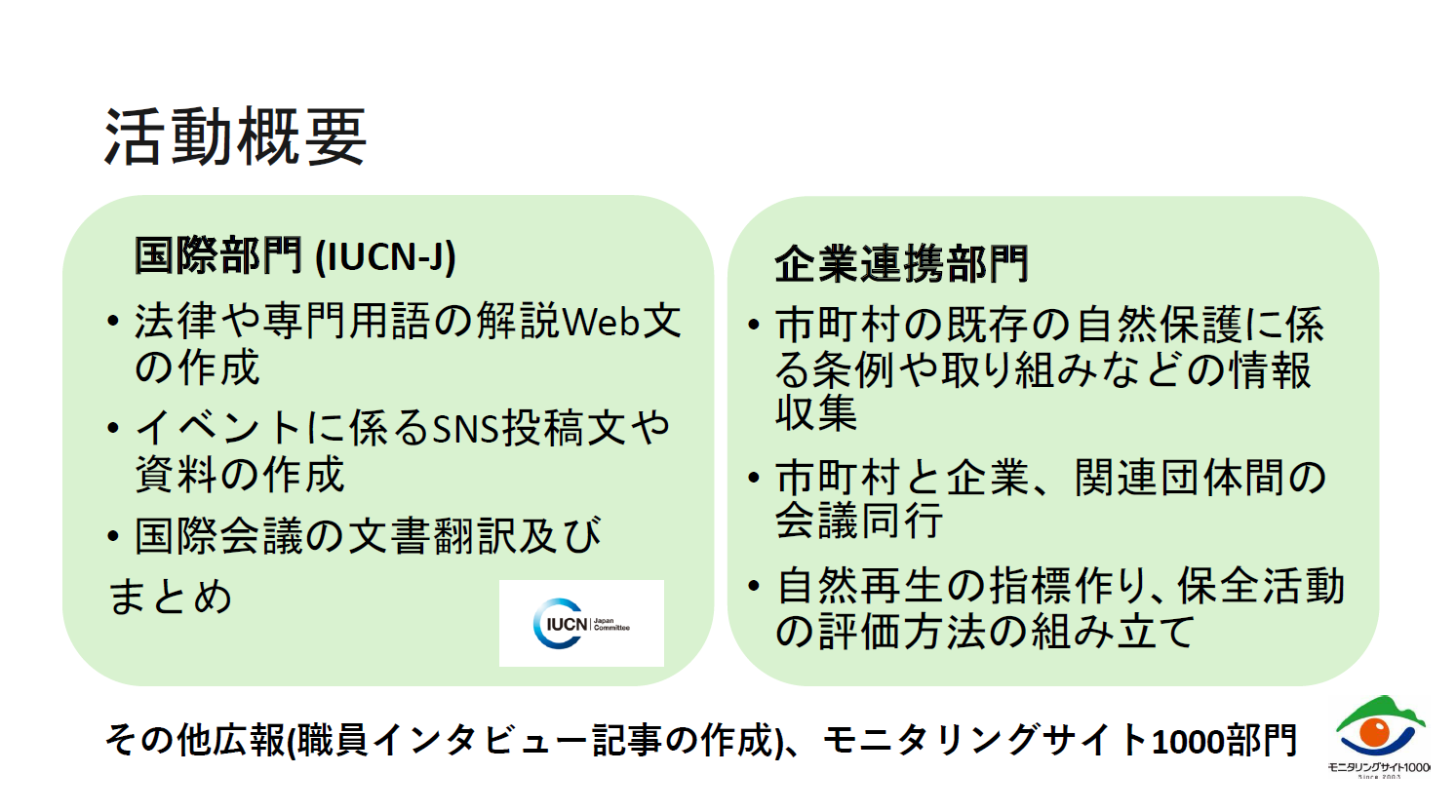 集約といった活動を しています。