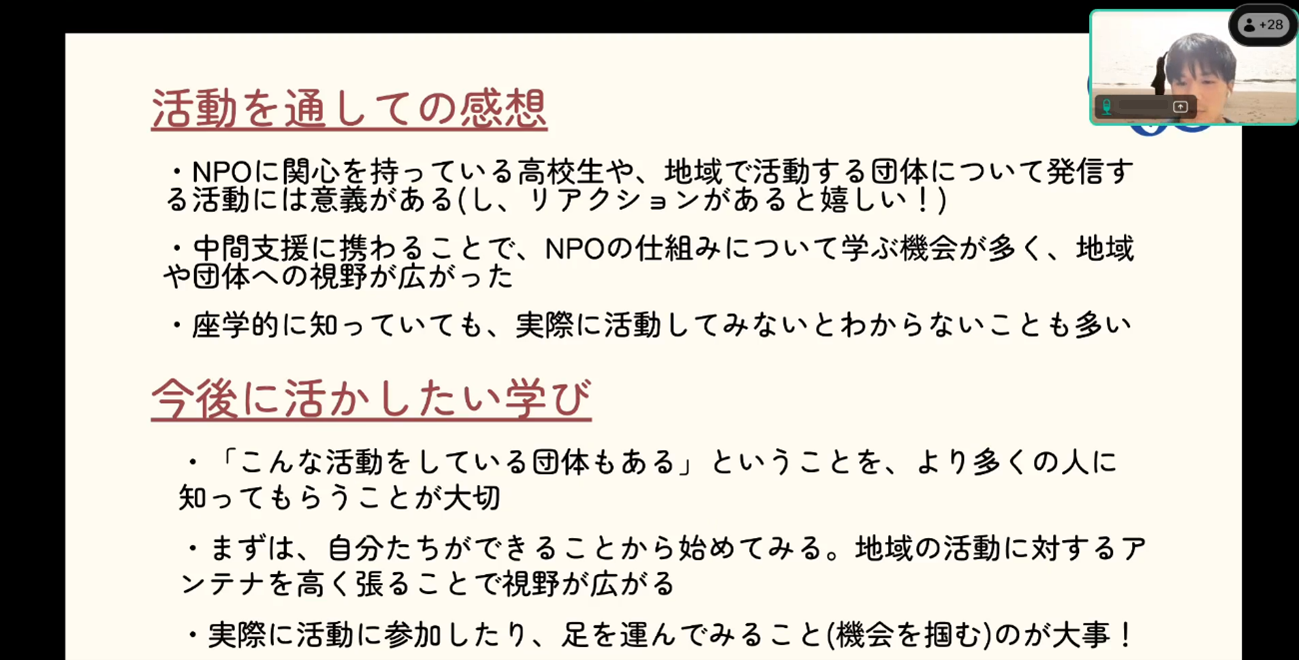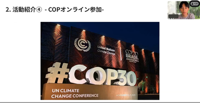 池田さんはCOPにオンライン参加したときのことを発表してくれました。