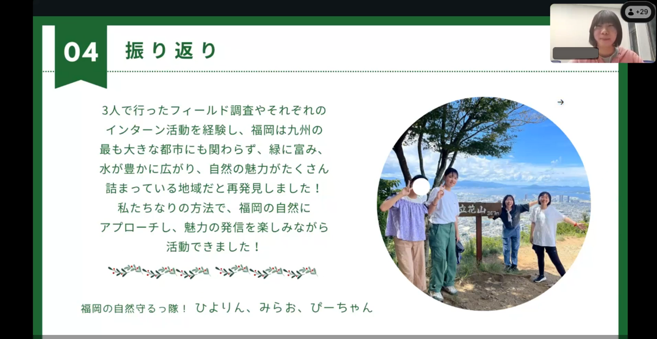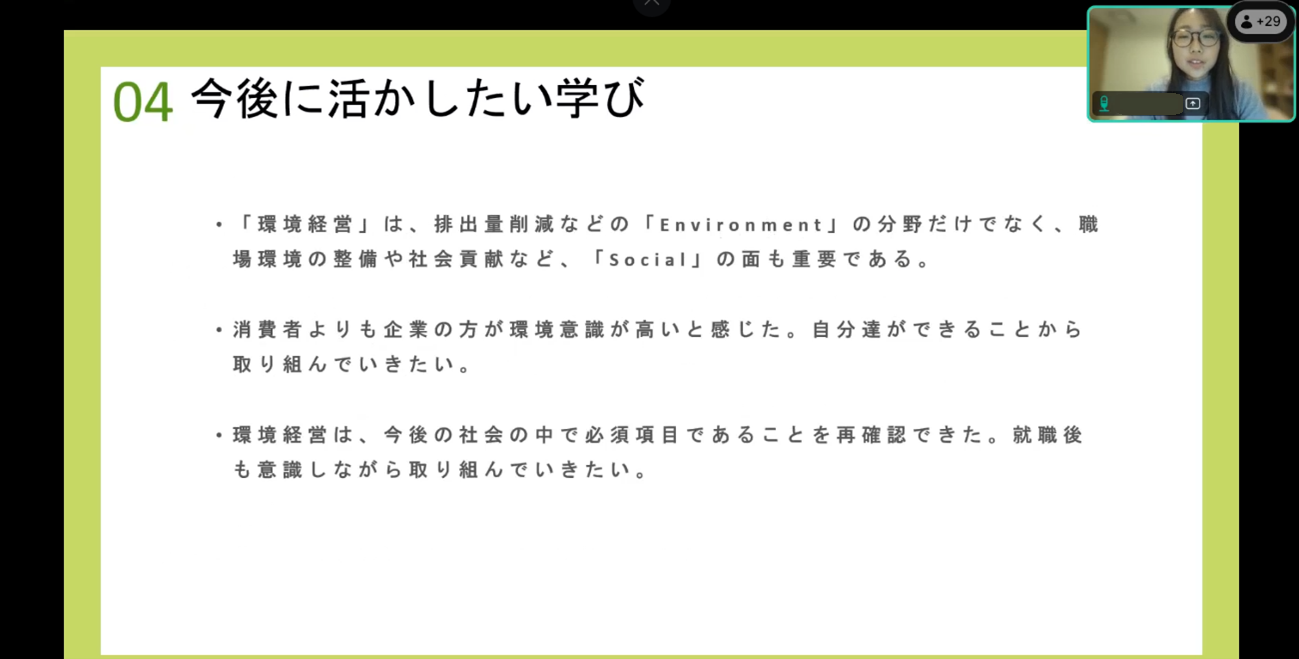 高屋さんはインターンを通して企業の環境への取り組みについて理解が深まったそうです。