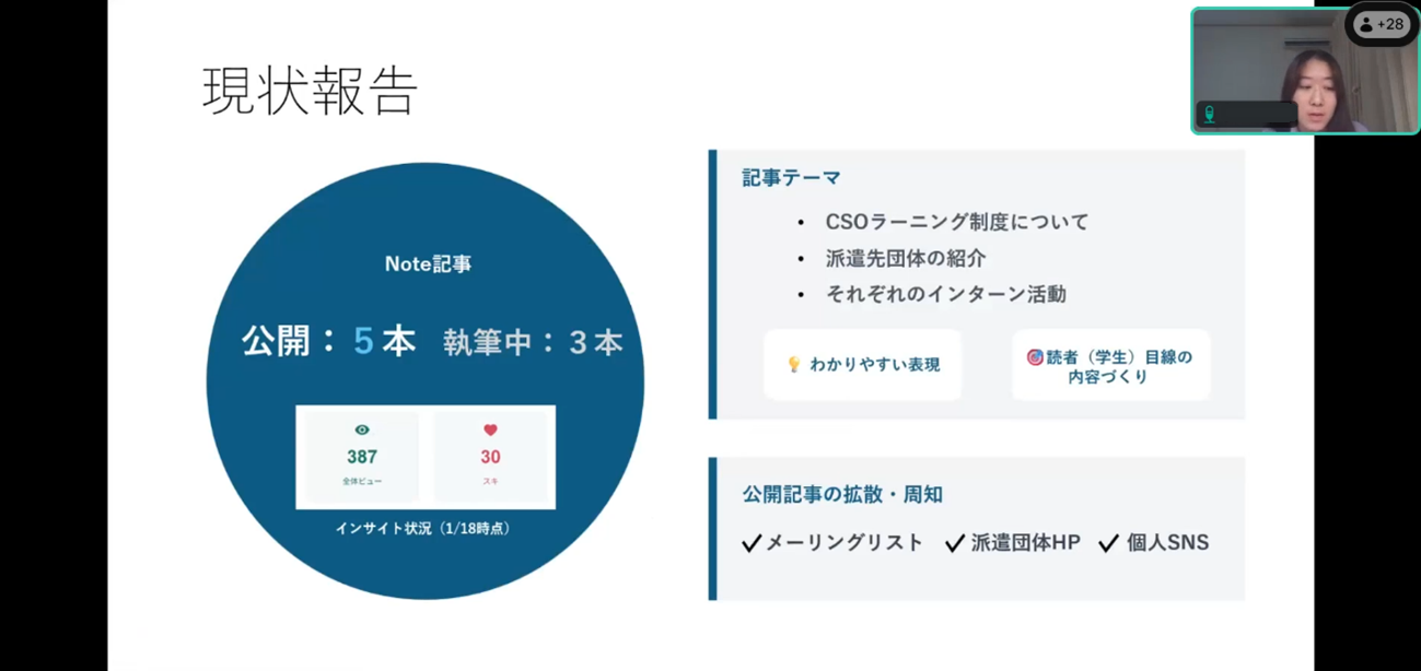 行うプログラムへの参加やブログ執筆などを行なっているそうです。