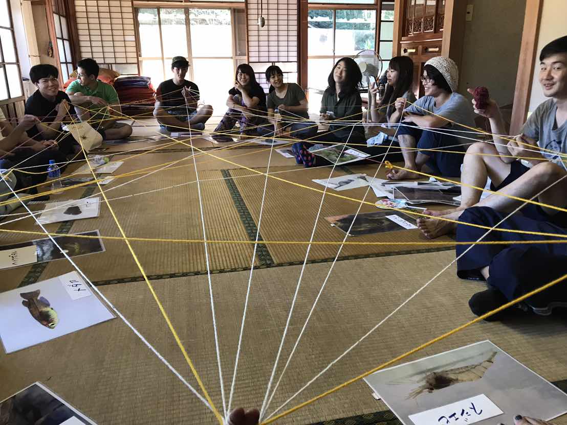 翌7日は、午前中にチーム対抗カレー作り対決を行いました。 3チームに分かれ食材争奪クイズを行い、 それぞれチームで工夫を凝らしたカレーを作ってもらいました。 カレーは火おこしからそれぞれのグループで始め、 苦労してご飯を作ることの大変さ、そして美味しさを感じてもらいました。 はじめましての人同士でも、カレー作りを通していつのまにか仲間になっていましたね。 午後は、毛糸を使った体感型生きもののつながりワークショップを行いました。 かっぱん田の生きものに1人1役なりきってもらいました。 生きものはたくさんのつながり、たくさんのありがとうで繋がっていること、 そして、耕作放棄地になるとどれくらいその繋がりが途絶えてしまうのかを 体感してもらいました。 そして、最後はつくば市にある「食と農の科学館」におじゃましました。 こちらでは日本の農業の歴史や新しい研究、稲作の歴史について触れることができます。 2010年度アサザ基金インターンの棚田さんがよくわかる解説をしてくださり、 本当に勉強になりました! 参加者の方々からは、「稲刈りやワークショップでは、 楽しみつつも耕作放棄地についても真面目に考えることができてよかった。」 「火おこしからカレー作りをしたり、自分の手動かすワークショップが楽しかった。」 「みんな(CSOのOBOG)に会えて嬉しかった!また参加したい。」 といった声をいただくことができました。 今回参加してくださった皆様、ありがとうございました! 参加できなかった方々も、次回のイベントのご参加お待ちしております。