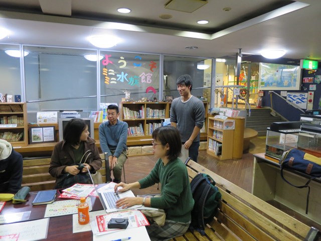関西地区の11月定例会は、 LEAFの事務局があるゆとり生活館アミ1Fをお借りして行いました。 この日はちょうどメンバーが会場へ向かう時間帯に列車の運転見合わせがあり、 定例会の開始が予定より1時間遅くなってしまうというトラブルがありました。 この影響で参加できなくなった人があり、とても残念でした。