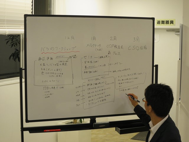 活動紹介の中では、こども達の普段の様子を写真でたくさん見せていただきました。 どの子も、すごく楽しそうだったり、真剣だったり、みんなで山登りをして疲れていたり。 自然の中で伸び伸びと育っている様子が伝わってきます。 団体のブログにはインターンの丹野さんも記事を書いています。 丹野さんの記事はこちら 宮城地区の自主プロジェクトは、2月1日のCOP報告会での ブース出店に向けて具体的に準備が進んでいます。 ヤシ油を使ったキャンドル作りを通じて、気候変動による海面上昇の問題と、 その被害をうける国々について学ぶプログラムを企画しています。