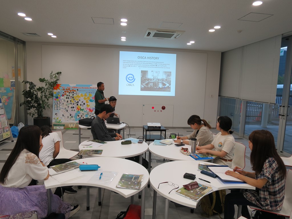 アイスブレイクの後は、「オイスカ中部研修センター」のことを 2014年度研修生だったグレゴリーさんに紹介していただきました。 昨年度、オイスカ中部研修センターに泊まらせていただいて 団体のことを多少は知っているつもりでしたが、 オイスカ設立の歴史やグレゴリーさん自身の研修生としての経験を伺い、 あまり知ることのできない研修生のお話を聞くことができて興味深かったです。