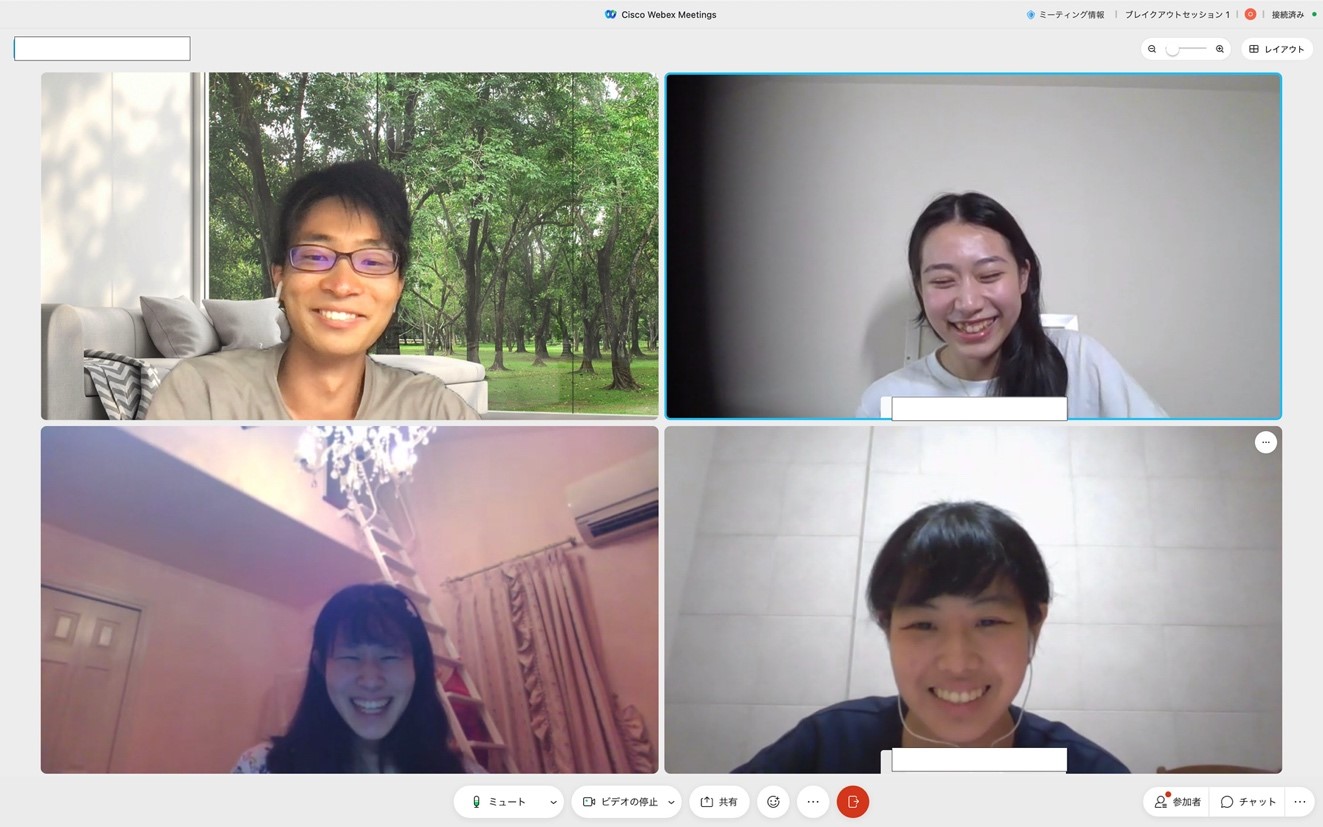 私のグループでは、各自どんな活動をしているかを共有しながら、話は学生生活のことから