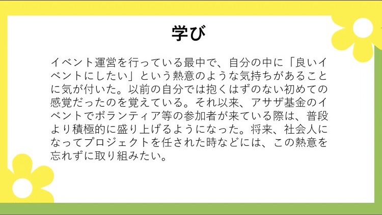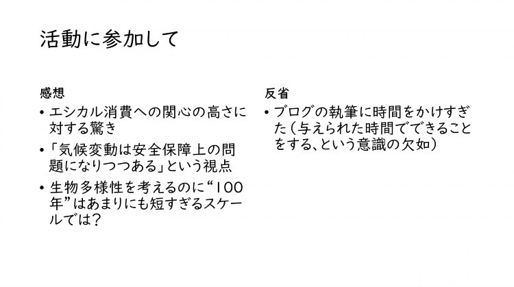 ような活動をする意義を改めて感じました。