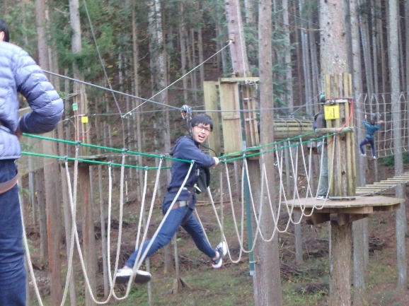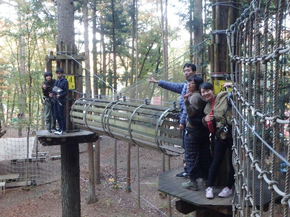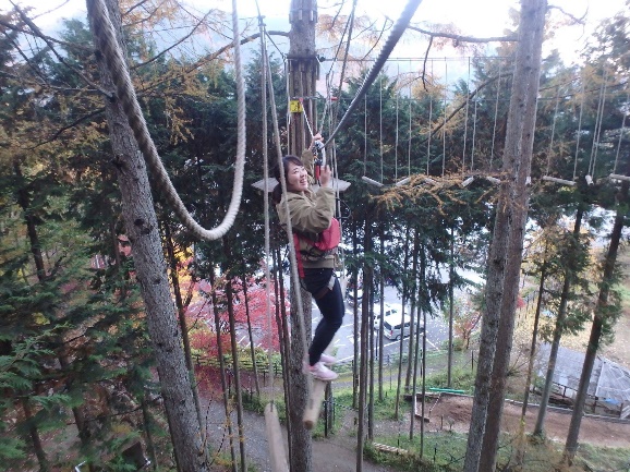 木と木との間のアクティビティを突破しながら、進みます。 足場の最高地点は15m!スリル満点!