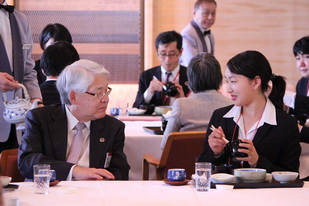 発表終了後には豪華なメニューを囲んで、先生方や環境財団の方々と会食を楽しみました。 普段お話しすることのできないような方々と環境問題に関してお話をする機会に恵まれました。