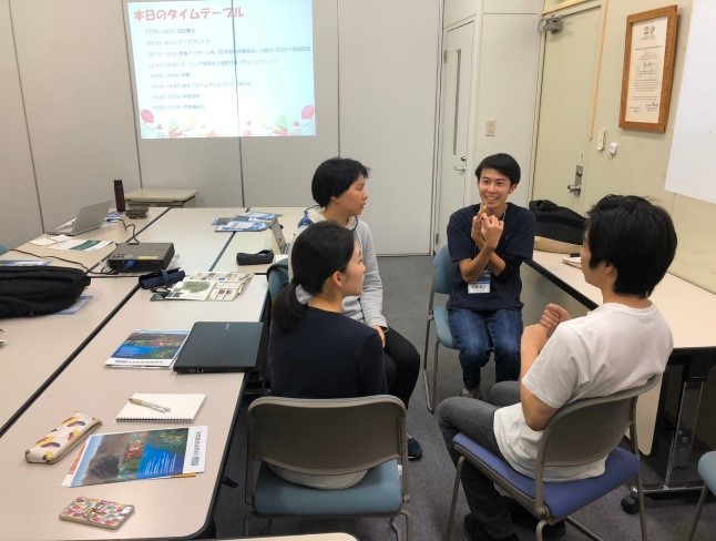 最後に、自主プロジェクトに向けて話し合いをしました。 (関西地区は12月18日に学生向けの環境問題についてのワークショップをします。) 何人かが内容をパワーポイントで考えてきてくれたり、 当日の役割分担が決まったりと、着々と準備が進んでいます。 来週の本番に向けてラストスパートです! 頑張りましょう!