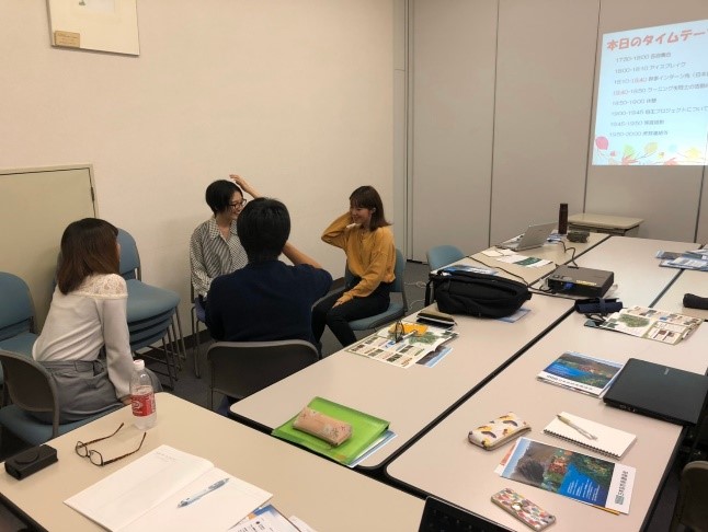 次に、自己紹介とアイスブレイクをしました。 それぞれの活動報告をしたあと、インターン先を選んだ決め手を発表しました。 初心にかえる良い機会となりました。