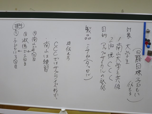 12月中に南山大学をお借りしてのイベントを計画しているので 当日のプレゼンを考える組と、 当日のイベントの内容を煮詰める組に分かれて作業をおこないました。