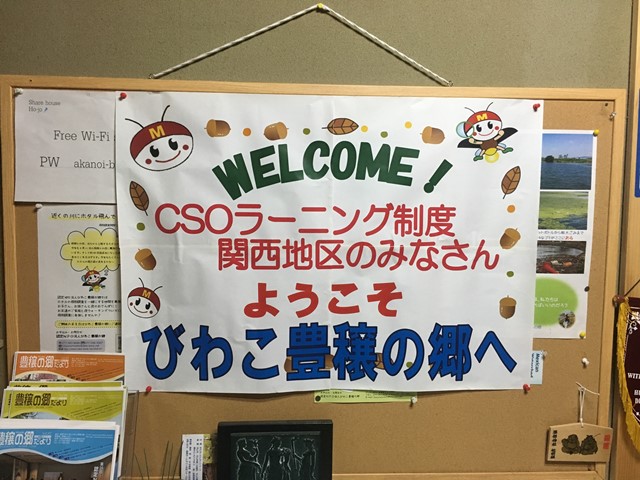 12月13日にCSOラーニング制度 関西地区の12月定例会が 関西地区派遣先である認定NPO法人びわこ豊穣の郷の事務所で行われました。 入ってすぐのところにwelcome!と書かれたボードを発見!! とてもアットホームな雰囲気で心温まりました。