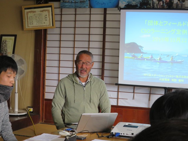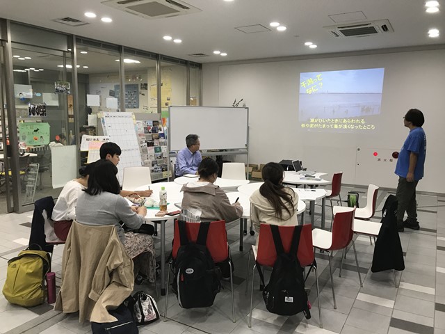 はじめに、代表の海野さんからオーシャンファミリーについてお話ししていただきました。 海は地球上の水の97.5%ということから、 海を守ることは水環境や地球環境を守ることとほぼ同義であるといいます。 印象的だったのは、海表面の水に異変が起きると、 その水が対流して再び海表面までくるのに約4000年も年月を要することです。 私たちが今汚してしまっている海は、 私たちが亡くなったずっと先まで残ってしまうということになります。 オーシャンファミリーは子ども達に海のなかで遊ぶ体験を提供することで、 海を好きになってもらいたいといいます。 海を好きになったり自然の素晴らしさを感じることで、 海・地球環境を守らずにいられないという気持ちにすることができるのだと。