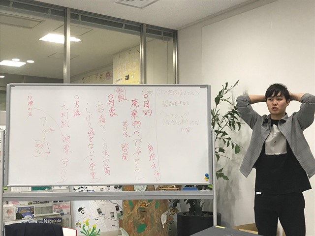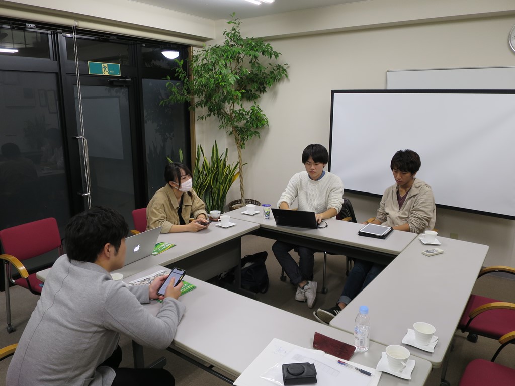 みなさんこんにちは。愛知地区チューターの吉田です。 今回の定例会の会場は淑徳大学のCCCで開催し、 幹事は特定非営利活動法人藤前干潟を守る会のインターン3名でした。 今回で定例会幹事が一巡し、全員が幹事を経験したので一安心しました。 損保ジャパン日本興亜環境財団からは、専務理事の西脇さんにお越しいただきました。 僕自身は全国合宿に参加しなかった関係上、今回お会いするのが初めてでした。