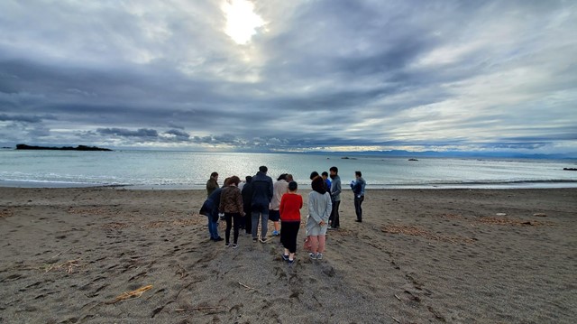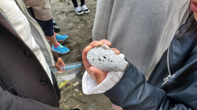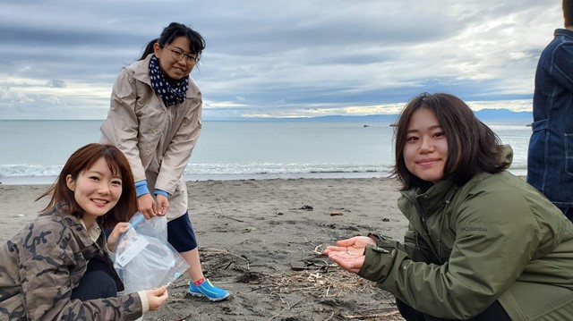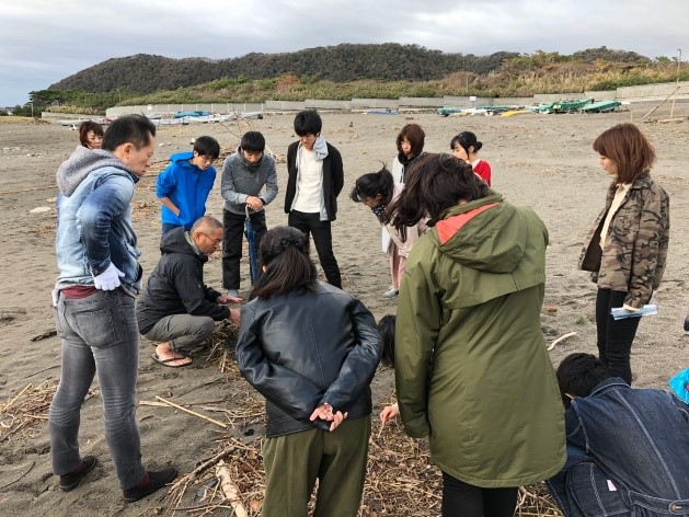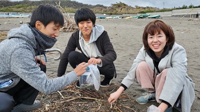 ラーニング生の活動共有を行った後...海岸へ移動して漂着物の観察を行いました! 海がきれい~、毎回こんな場所で活動しているインターン生がうらやましいです。 プラスチックごみの問題となっているマイクロピーズ、石に穴を空けて住む貝、 海綿、コールタールなど、新たな発見がたくさんあって子どもに戻った気分になりました。 その中でも一番の驚きは、海野代表の知識量です! 漂着したせとものの形や着色、 劣化具合などから年代やものを推測できてしまうなんてびっくりです! 専門の方ってすごいな~と改めて実感しました。