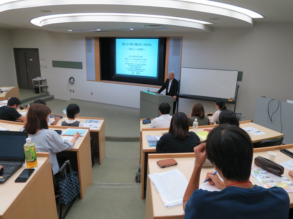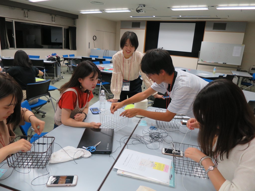 合宿のプログラムは盛り沢山! 各自で研修の目標を立てたり、これまでのラーニング活動を振り返ったり、 アイスを食べながら“損保ジャパン日本興亜の取り組み”を学んだり。 ワールドカフェ(ディスカッション)やミサンガ作りのワークショップなど、 ちょっとしたレクリエーション企画もありました。 外部からご登壇、ご協力頂けるゲストも多数お招きしました。 エシカル協会の末吉様には、『身の回りから世界とのつながりを考える』と題した、 エシカル消費をテーマとしたワークショップを開いて頂き、 コンサベーション・インターナショナル・ジャパンの日比様には、 『地球との働き方』というタイトルで、ご自身のこれまでのキャリアや ご所属のCSOの活動についてお話し頂きました。 損害保険ジャパン日本興亜の二宮会長(損保ジャパン日本興亜環境財団理事長)は、 SDGsや、 その目標達成に向けた企業の取り組みをご紹介くださいました。 そして二日目の夕方には、総勢13名の“CSOラーニングOB・OG”の方々が 守谷まで駆けつけてくださり、 グループに分かれて、 『学生の時にやっておくべきこと』や『進路を決める際に考えたこと』など、 現役生にとってはタイムリーなテーマについて貴重なアドバイスをくださりました。