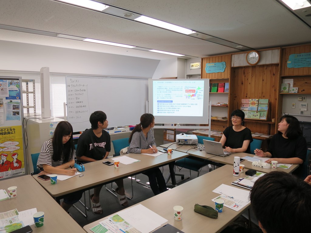 こんにちは。 大学生は待ちに待った夏休みを迎えました。夏だ! 宮城地区チューターの畠山です。 さて、8月13日に行われた 宮城地区定例会の様子を報告します。 8月定例会では、宮城地区インターン生の活動共有や、NPO活動の講話、 インターン生自主プロジェクトの相談を行いました。