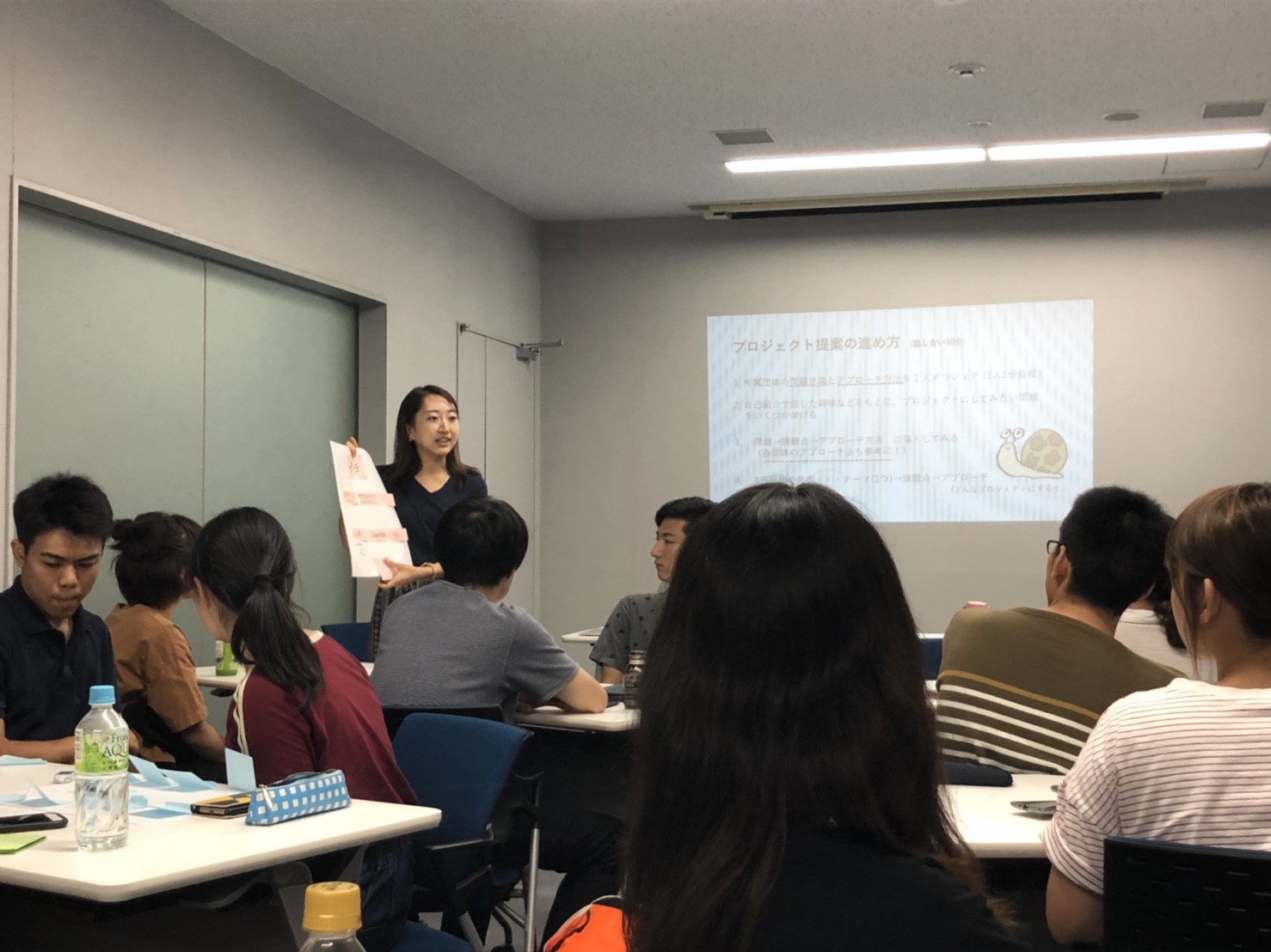 定例会は、アイスブレイクのあと派遣先の活動紹介をしました。 今回はアサザ基金と、会場を貸してくださったJUON NETWORKの2団体が行いました。 アサザ基金は、基本的に屋外活動をメインにしている団体で、 他のCSOと比べてすこし珍しい団体なので、フィールド活動が好きな 学生が集まっている印象でした。 また、損保ジャパン日本興亜環境財団と協働で、耕作放棄地を再生した 「かっぱん田」の管理をしており、イベントを企画運営して楽しむことを通じて、 自然環境を学ぶことができる団体です。