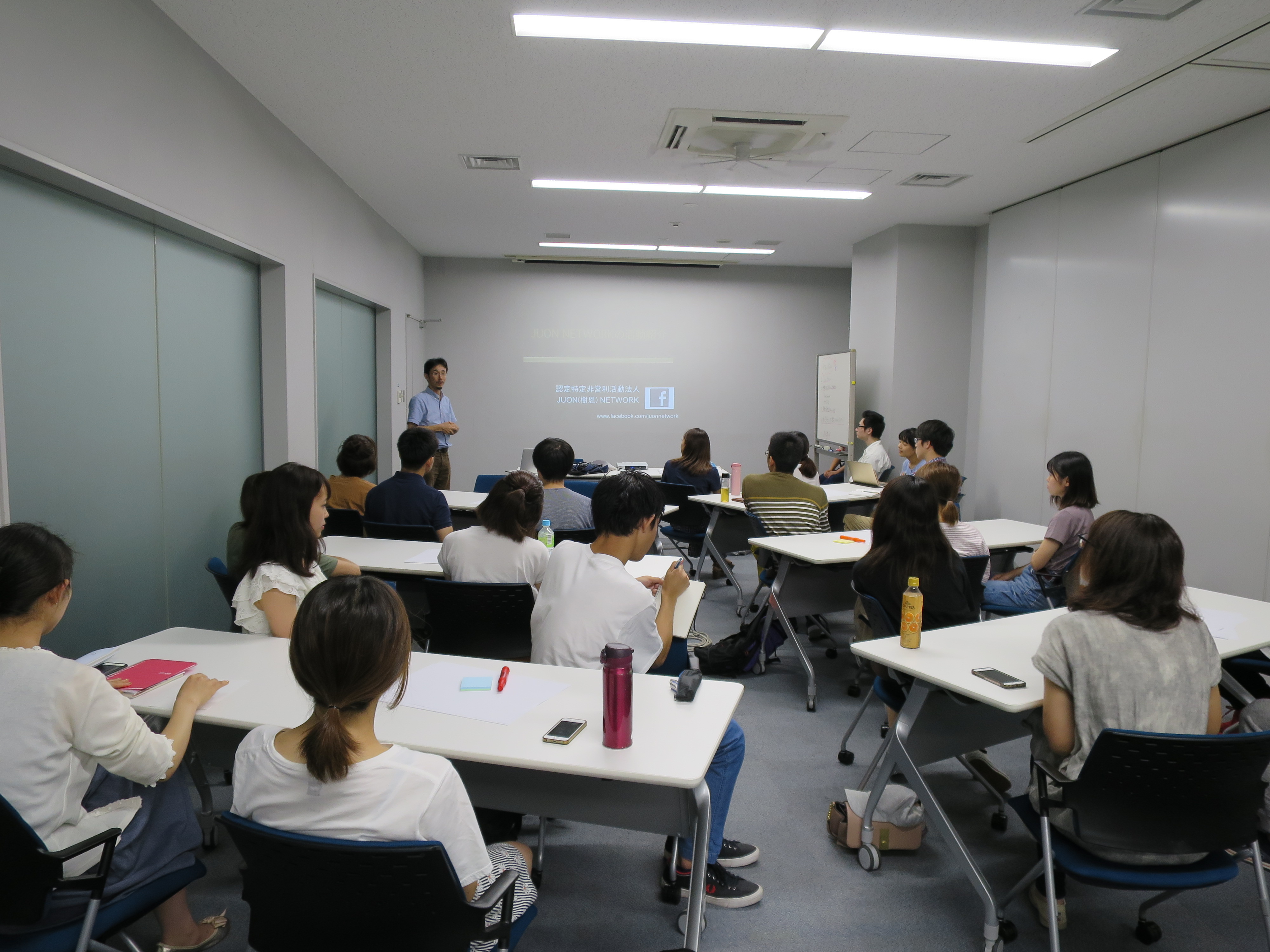 JUON NETWORKは、大学生協の支援を受けてできた認定NPO法人です。 森に行きフィールドワークを通じて人と森の共存を感じる森林(もり)の楽校や、 高齢化による農業を担う人員不足を解消するため、農家さんのお手伝いをする 田畑の楽校などの活動が印象的でした。 その後、JUON NETWORKの事務局長である鹿住さんがお話ししてくださいました。 鹿住さんは、都市と農村におけるお金や人のつながりの循環を促進することが JUON NETWORKの役割だとおっしゃっていました。 一例として、過疎地域の廃校を利用したセミナーハウスを開催しているそうです。 また、大分遡りますが阪神淡路大震災の際には、使えなくなったテニスコートを 無料で提供してもらい、間伐材でプレハブの仮設住宅をつくったそうです。 日本の木材の自給率は約30%で、都市と海外とのつながりはあるものの 農村とつながっていない事が課題であると、鹿住さんはおっしゃっていました。 このような実体験があってこそ、両者をつなげることを大事にしているだと感じました。 最後に、プロジェクトの提案をグループに分けて行いました。 ・ホットな話題であり、若者からも発信すべきオリンピックの環境問題、 ・都市にいる大学生は実感しづらいが全国合宿でもヒアリングできそうな過疎地域の問題 ・就職が待ち構えている2,3年生が多いという特徴を生かした、 企業の環境への取り組みや環境ビジネスについてのイベント など、個々のテーマ案が被ることなく積極的に意見が出せた様子でした。 今月末にある全国合宿以降、今回出た案を行動へのフェーズに持っていけるように チューターとして手伝えることは最大限行っていきます。 また、個々のCSOでのインターンについても、 自分がなんのためにこのインターンをやっているのか、 もう一度見つめなおして、日々の活動の中でも目的を意識して 取り組んでいってもらいたいと感じています。
