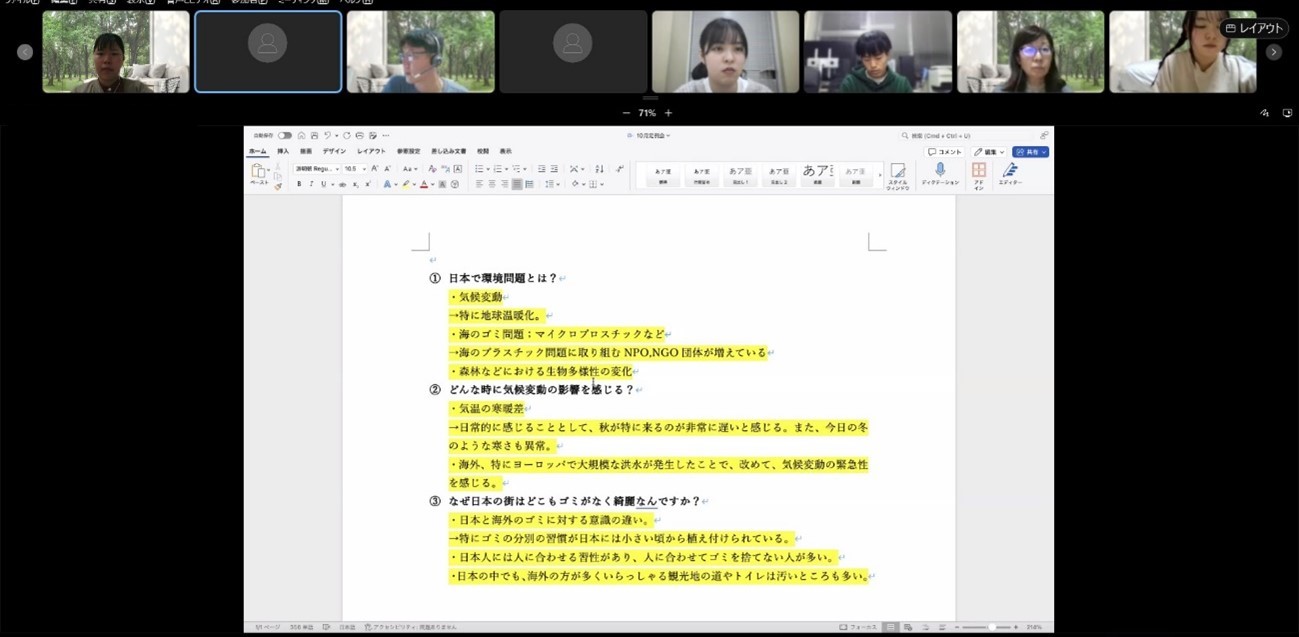 前半は環境に関するグループディスカッションを行い、後半はミニプロジェクトの