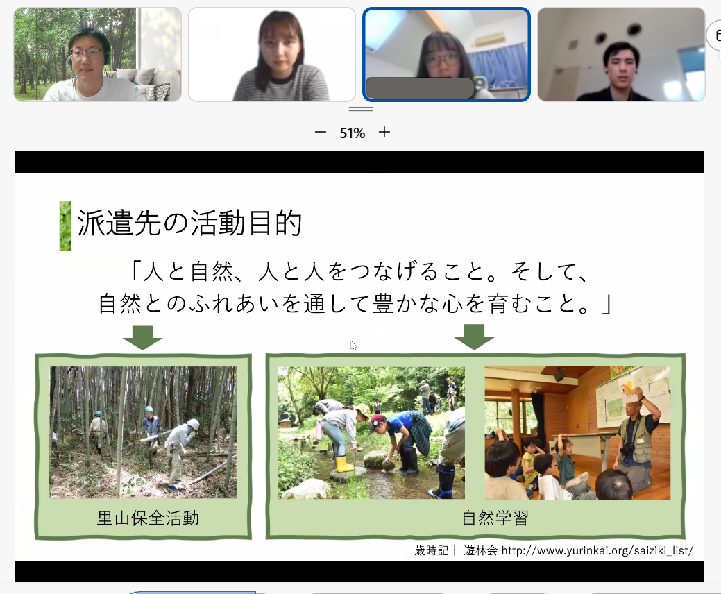 志賀さんはオンラインで参加してくださり、活動内容に加えて、NGO(Non-governmental