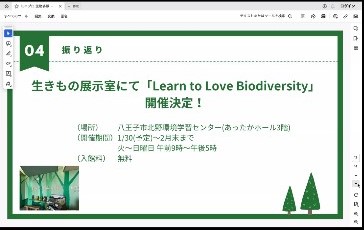 北野環境学習センターにて「Learn to Love Biodiversity」の展示会を開催できることになった