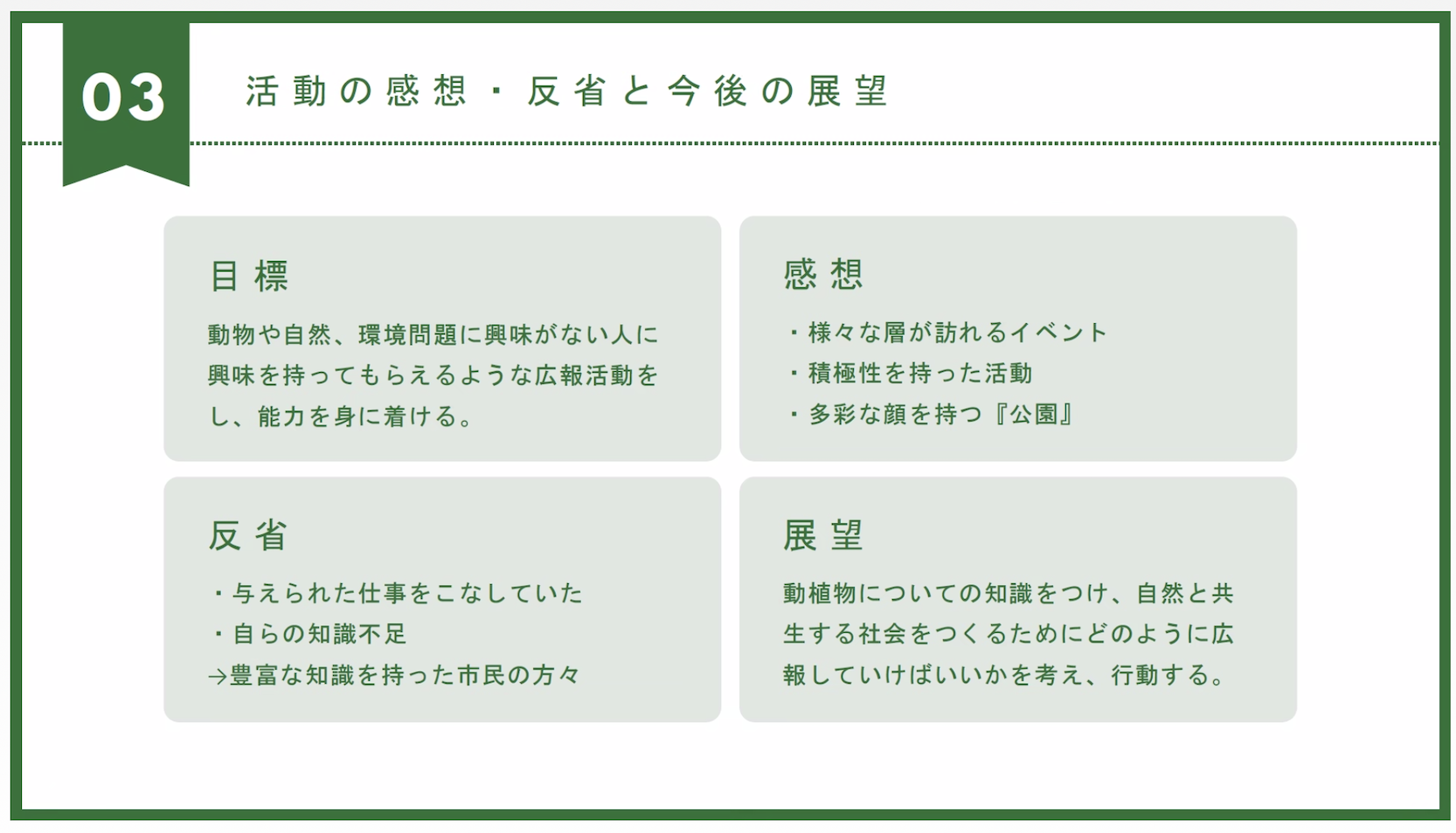 広報していけば良いかを考え行動していきたいと発表してくれました。