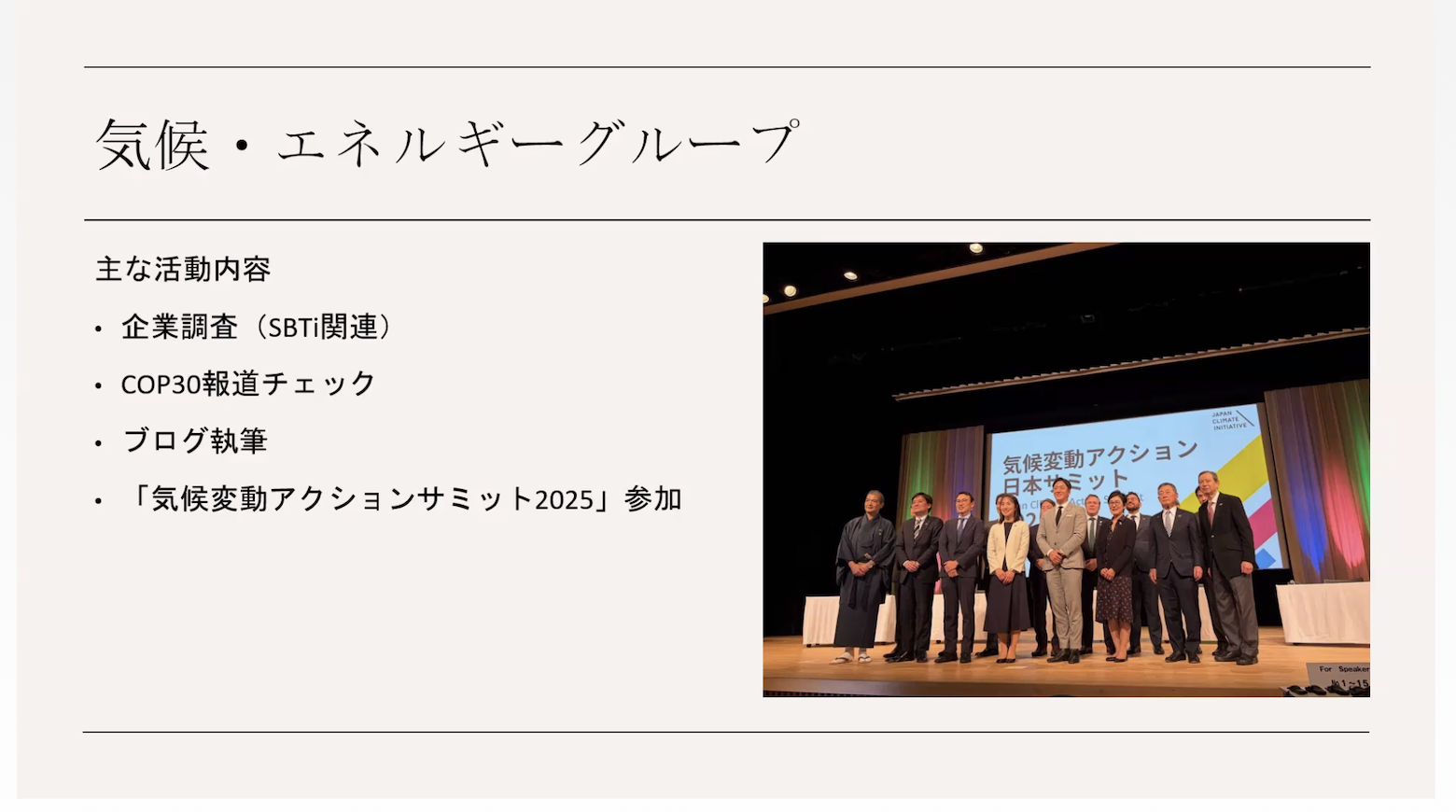 佐藤さんと土田さんは、気候・エネルギーグループで企業調査やCOP30の報道チェックなどを