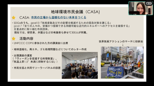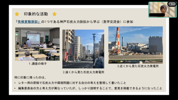 池田さんはCOPにオンライン参加したときのことを発表してくれました。