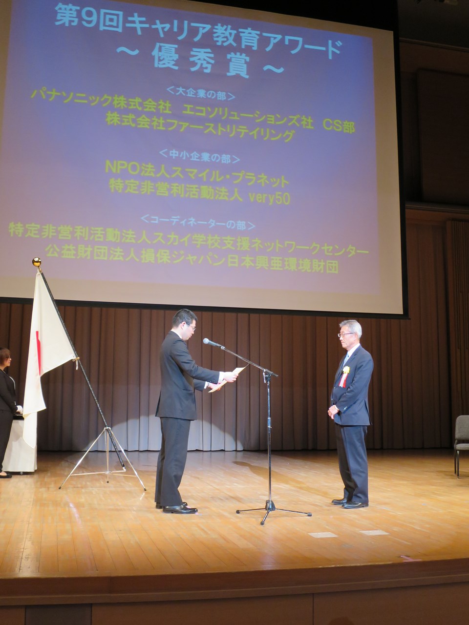 「キャリア教育アワード」は、優れた教育支援活動の取組を奨励・普及・促進することを 目的として、経済産業省が企業や団体を表彰するもので、 大企業、中小企業、コーディネーターの3部門で優秀賞と奨励賞が選考されます。
